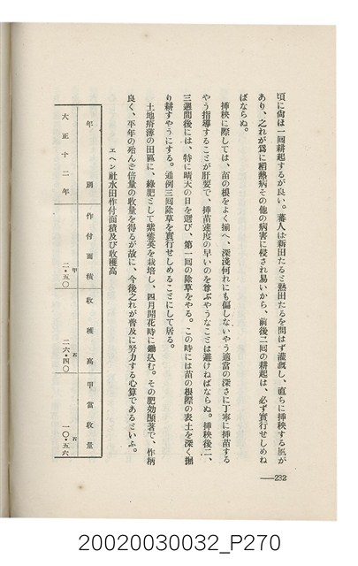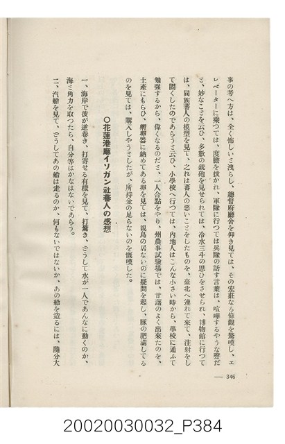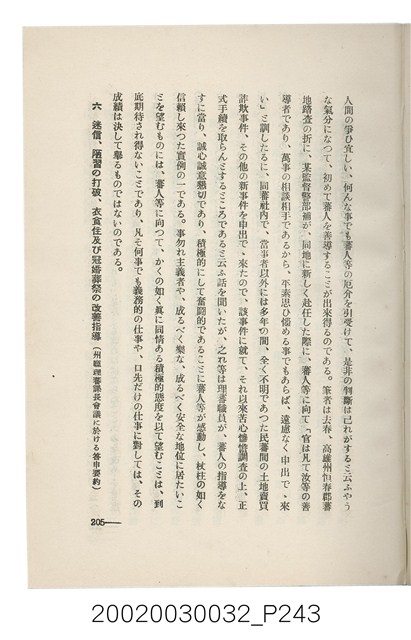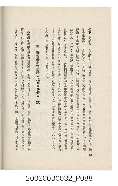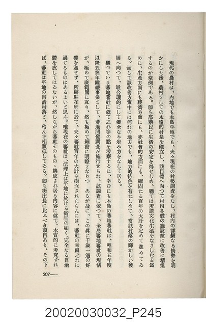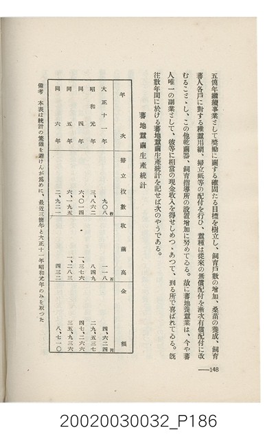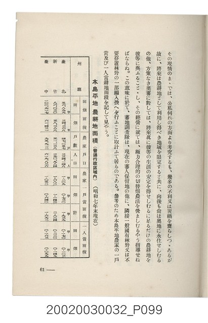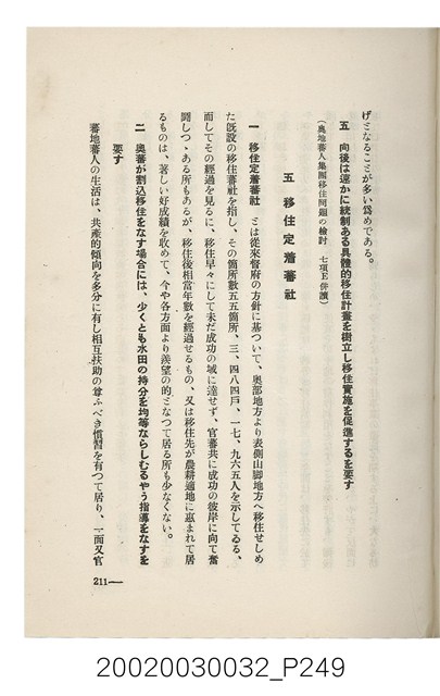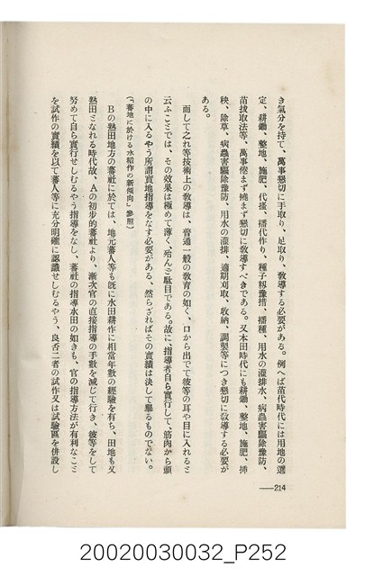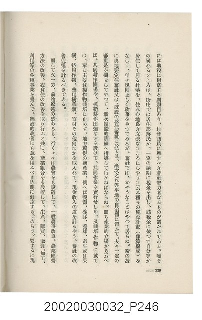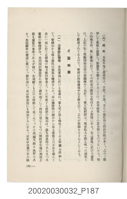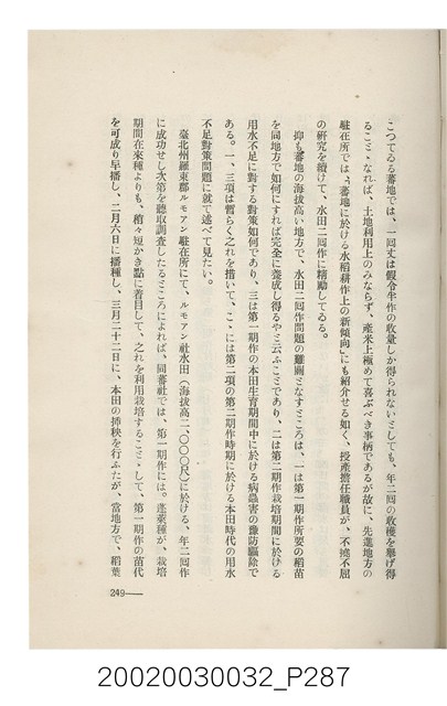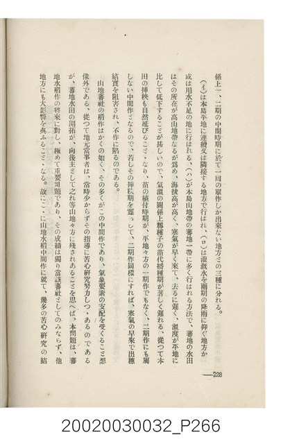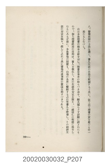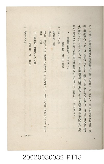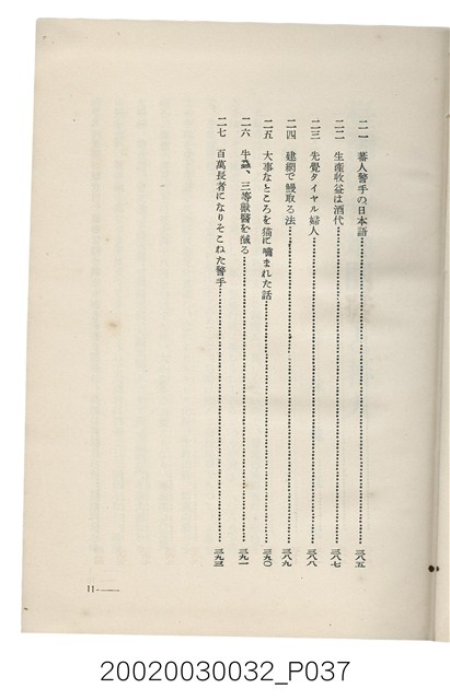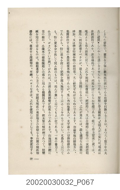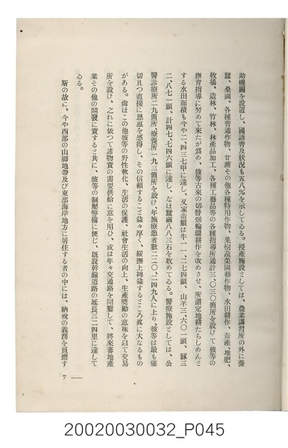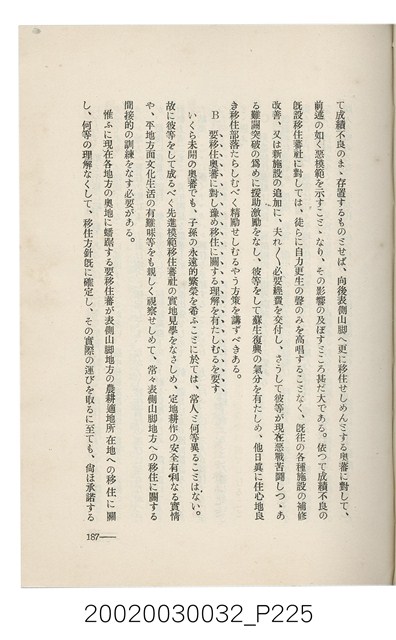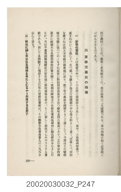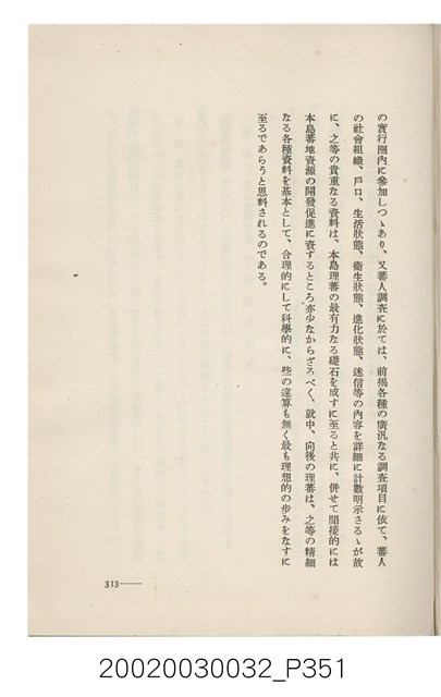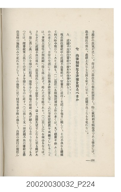 1.本書為岩城龜彥所著,其內容主要探討臺灣原住民的農業、畜牧業、住居、各地原住民部落等開發事宜。內附總督府警務局長石垣倉治所撰之序文。本書的章節包括:臺灣の蕃地開發調查に就て、蕃地蕃人の農地經營論、蕃地の經濟價值、奧地蕃人集團移住問題の檢討、蕃地蕃人指導に關する管見、蕃地に於ける水稻耕作上の新傾向、蕃人食糧問題と陸稻作、蕃地に於ける里芋に就て、本島に於ける牧畜事業と蕃地の開發、蕃地巡り所感、蕃地開發調查の旣往竝に將來、臺灣官民諸名士の蕃地開發私案に就て;其所收錄的插圖有:著者[岩城龜彥]徒步旅行ノ足跡圖、奧地居住蕃人の蕃社(臺中州能高郡トロコ社、海拔高4,850尺)、奧地居住蕃人の蕃社(高雄州潮州郡クナナウ社、海拔高3,500尺)、集團蕃社の階段水田(臺北州羅東郡ルモアン社、海拔高2,000尺)、集團蕃社の階段水田(新竹州竹東郡シラツク社、海拔高1,900尺)、集團移住蕃社の改良蕃屋(花蓮港廳研海支廳ブスリン社、海拔高180尺)、集團移住蕃社改良住屋の内部(花蓮港廳研海支廳ブスリン社、海拔高180尺)、先進蕃社の青年團(花蓮港廳研海支廳ブスリン社、海拔高180尺)。2.本物件與館藏登錄號2003.033.0004之藏品相同。