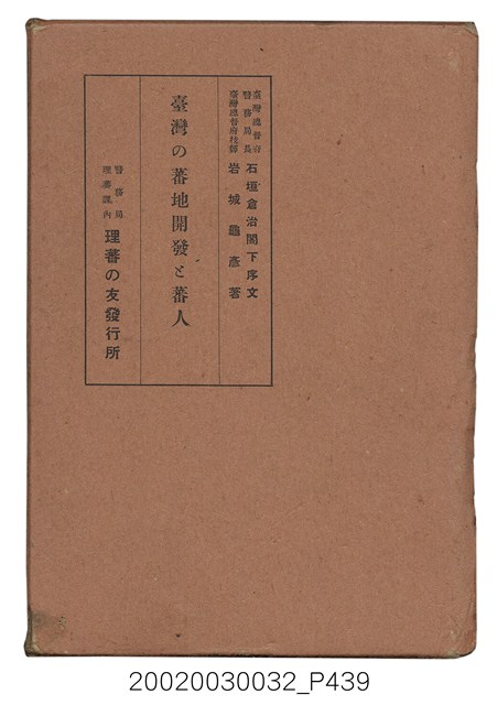 《臺灣の蕃地開發と蕃人》,臺灣研究古籍資料庫,http://rarebooks.ith.sinica.edu.tw/sinicafrsFront99/search/search_result2.htm?xmlId=0000126794&display=detail(瀏覽日期:2018/09/25)。