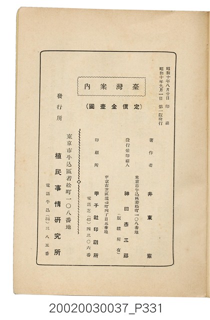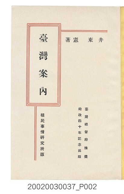 《臺湾案内》,(日本)國立國會圖書館,http://dl.ndl.go.jp/info:ndljp/pid/1234752(瀏覽日期:2018/09/25)。