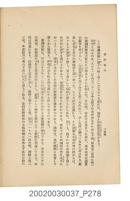本書為井東憲所著,內容鉅細靡遺地敘述了臺灣各大城市及名勝古蹟、臺灣各種產業的面貌、法制、教育、社會事業、醫療、交通、動植物及水果等等,其中在第十二章是深入探討臺灣糖業發展的專章,可見當時糖業的發達。內附歷代臺灣總督的頭像,臺灣全島地形圖,以及其他珍貴的照片。