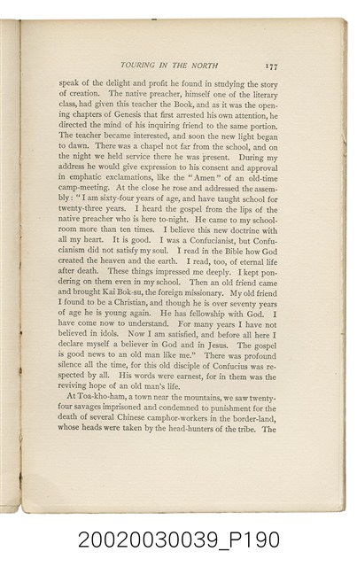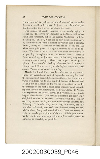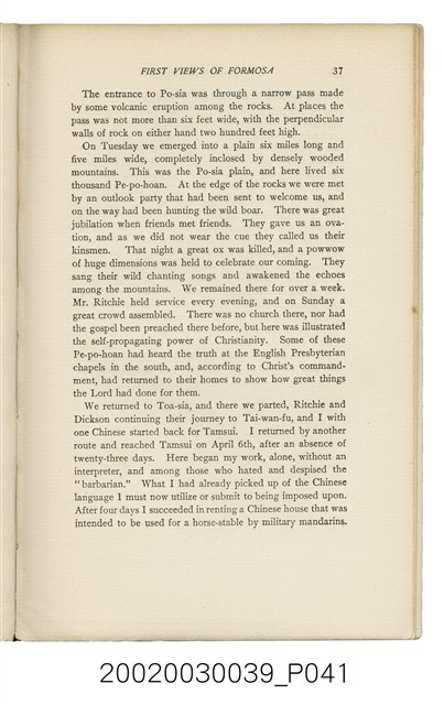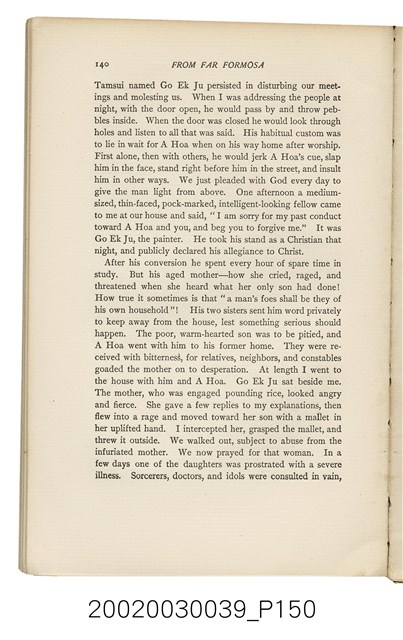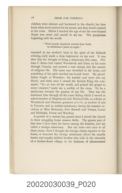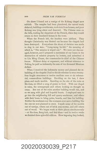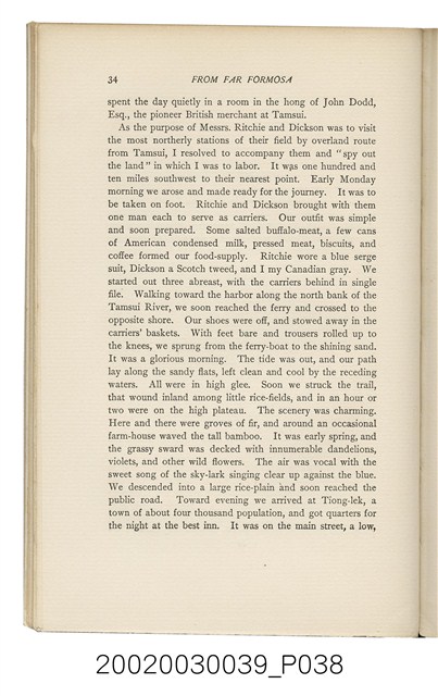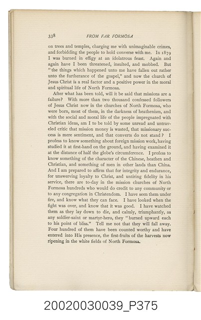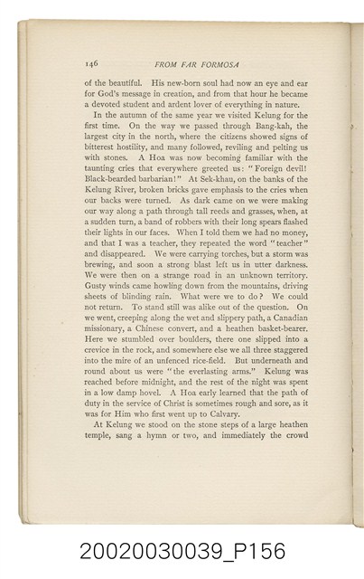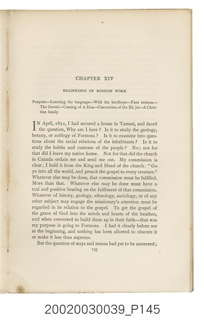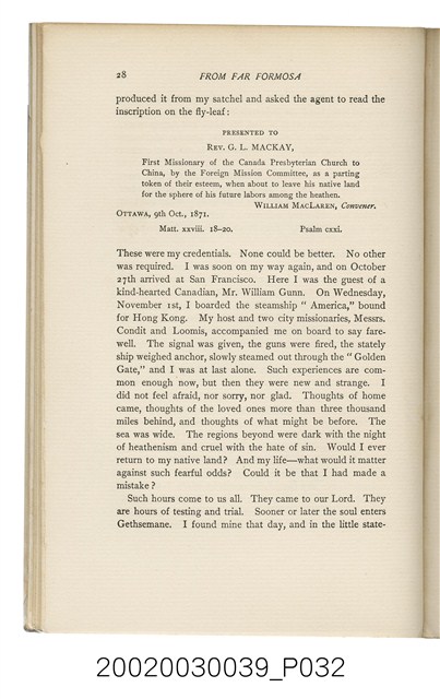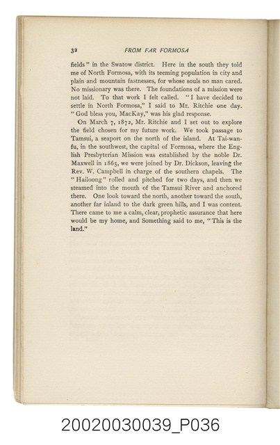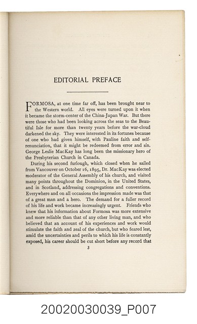 2. 馬偕長期以來一直是加拿大長老會傳教士的英雄。1871年12月31日抵達臺灣,1972年到淡水定居,直到1901年因罹患喉癌在淡水寓所辭世。1895年,馬偕將大量的文獻,包括筆記、觀察記錄、報告和日記的摘錄、科學研究、描述的片段文字、人物的素描等等資料交予James Alexander MacDonald牧師,希望他協助整理及出版。本書於是出版於1896年。