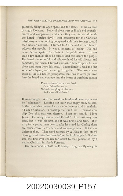 林衡哲,認同台灣熱愛台灣的宣教士馬偕(1844-1901),民報,http://www.peoplenews.tw/news/8715cfc9-4d4f-47df-8a13-8723e9ff76e3(瀏覽日期:2018/07/17)。