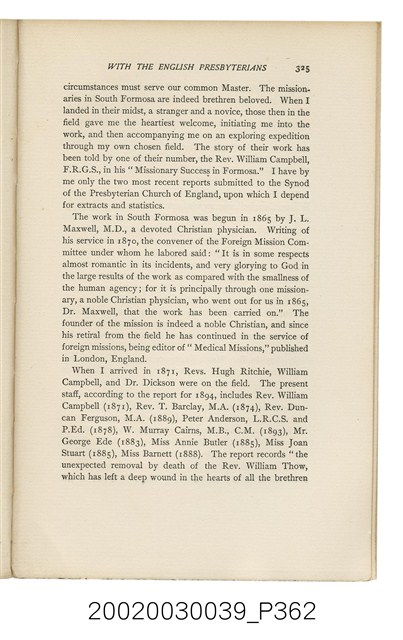 George Leslie MacKay著、Rev. James. Alexander Macdonald編