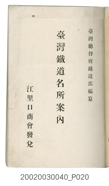 陳衍秀,帝國之眼中的國境之南:臺灣鐵道名所案內中的本島風景,臺灣文化研究網站,http://www.srcs.nctu.edu.tw/taiwanlit/issue3/4-1.htm(瀏覽日期:2018/07/17)。