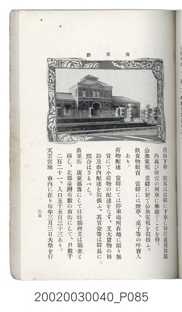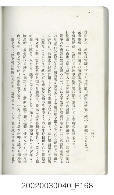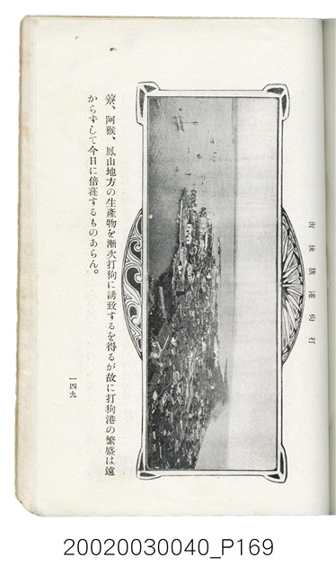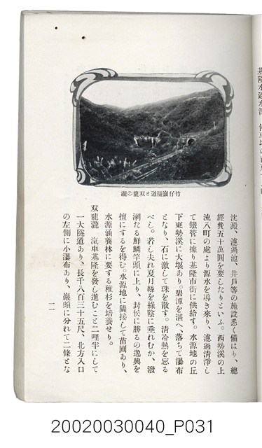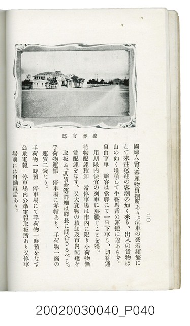 2.1908年,臺灣西部縱貫線通車,這是總督府鐵道部出版的第一本圖文並茂的臺灣鐵道旅遊指南。其中詳細介紹了縱貫鐵道沿線各站的地理位置、周邊名勝、自然景觀、特產、旅館、飲食和交通資訊,並附上多幅以全景視角所拍攝的照片,例如:臺灣的花卉、北投溫泉、大甲溪鐵橋和水牛等。