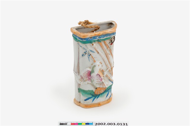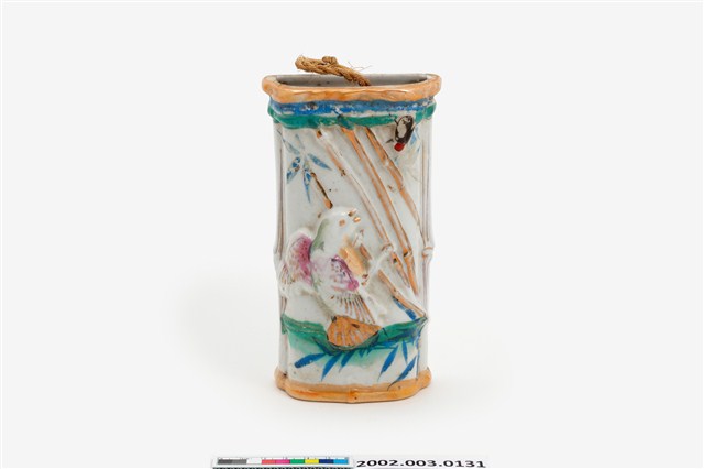 2002.003.0131 白瓷半圓形小鳥紋彩繪筷筒