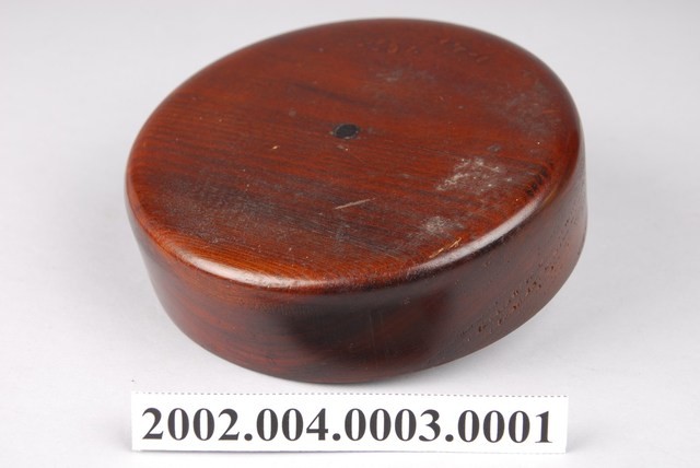 2002.004.0003.0001 褐釉雕花六角茶葉甕木蓋