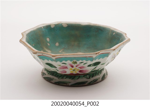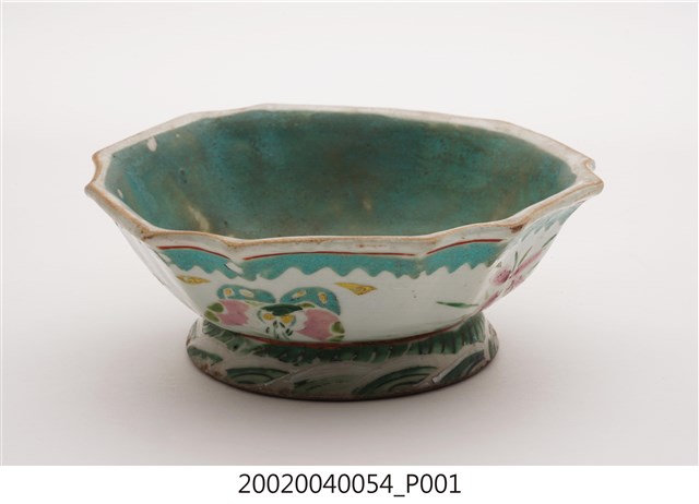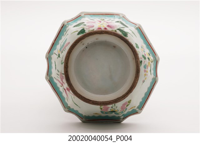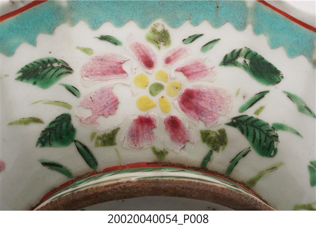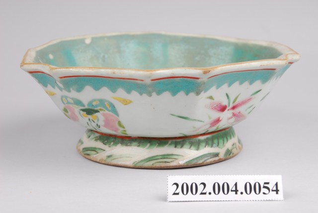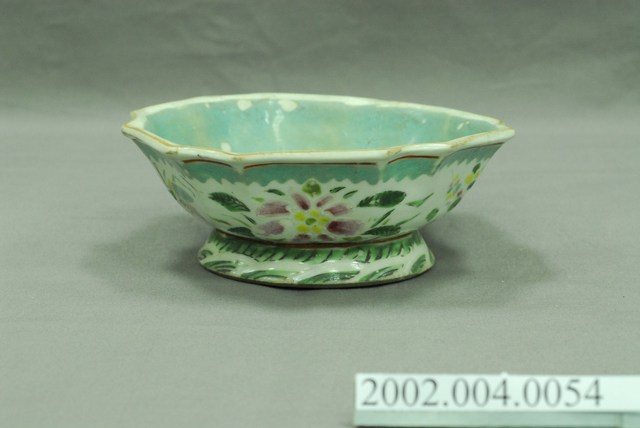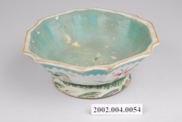 2002.004.0054 釉上彩花卉紋多邊形高足碗