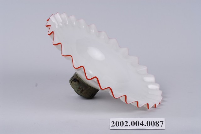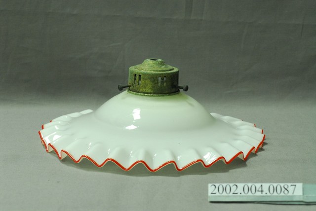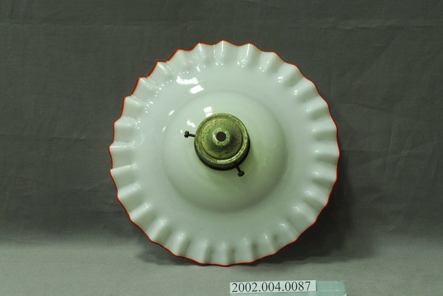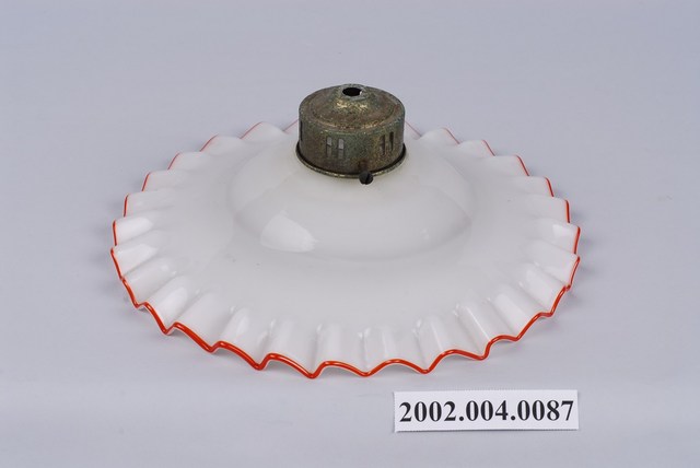 2002.004.0087 紅邊白玻璃波浪燈罩