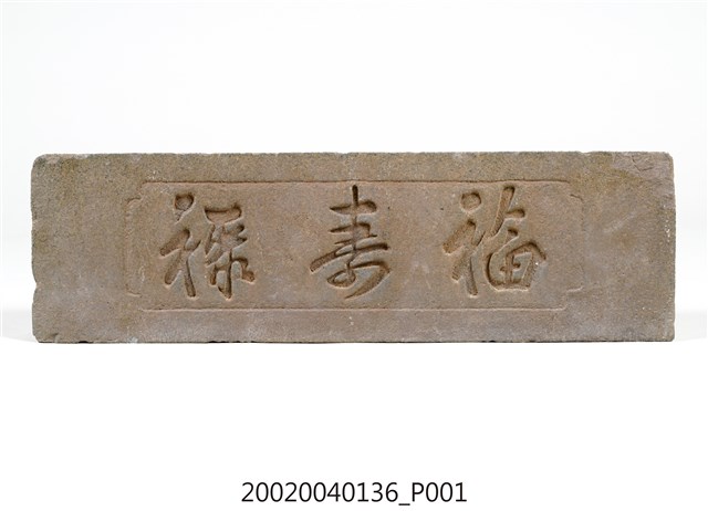 本文物石雕板,刻「福祿壽」文字,周圍以細線框。以其尺寸比例,推測為石窗的窗楣,或過水等單片門的門楣。可能用於民宅、宗祠或廟宇。「福祿壽」為三星宿,象徵漢傳統文化的祈願,福為好運勢,祿為官,壽為長壽。