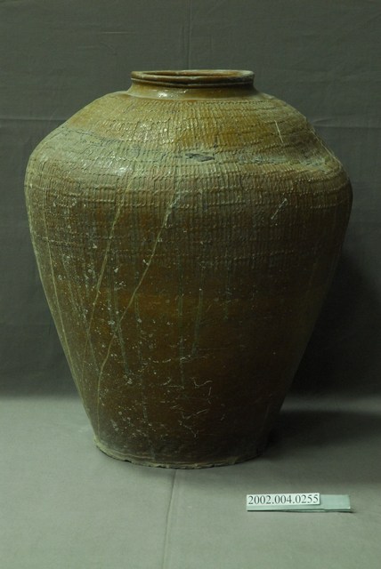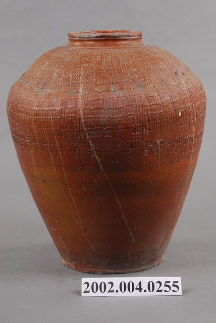 2002.004.0255 褐紅釉龜殼紋陶甕