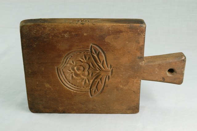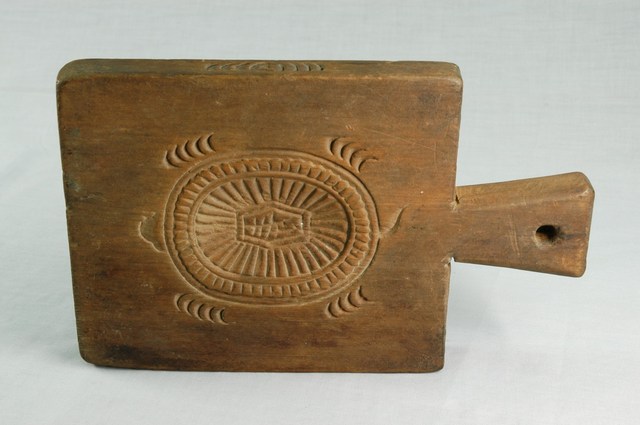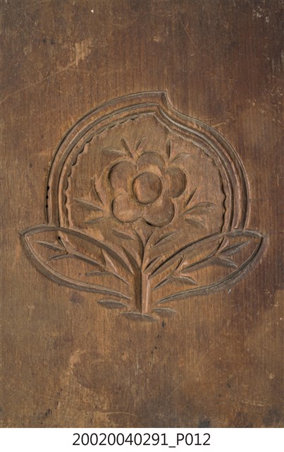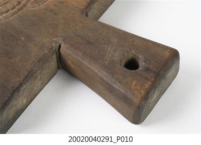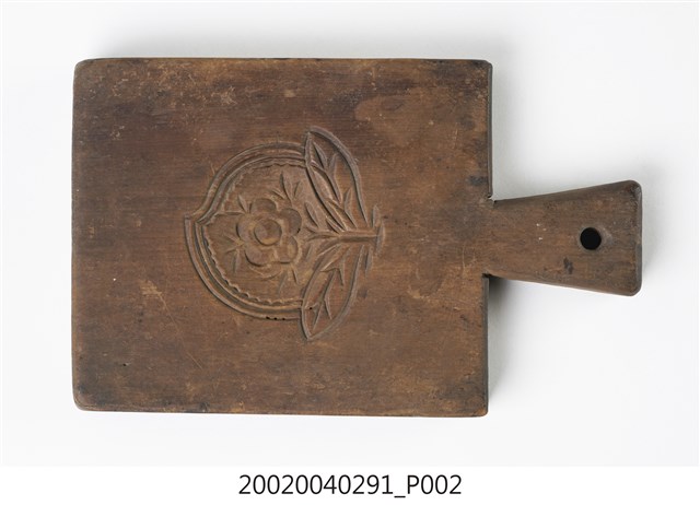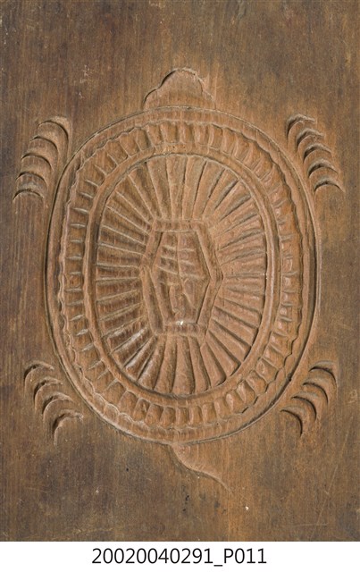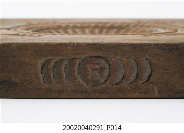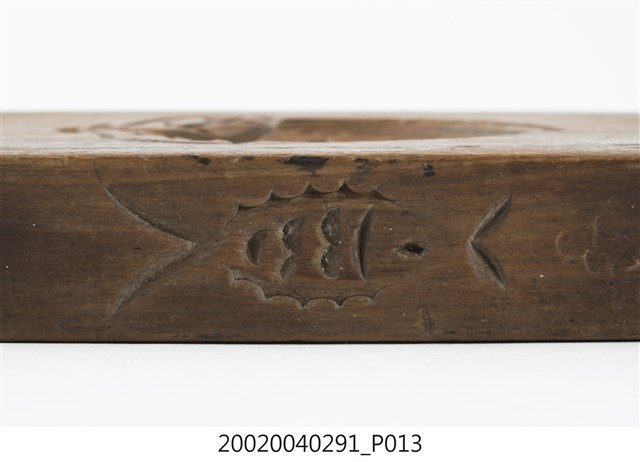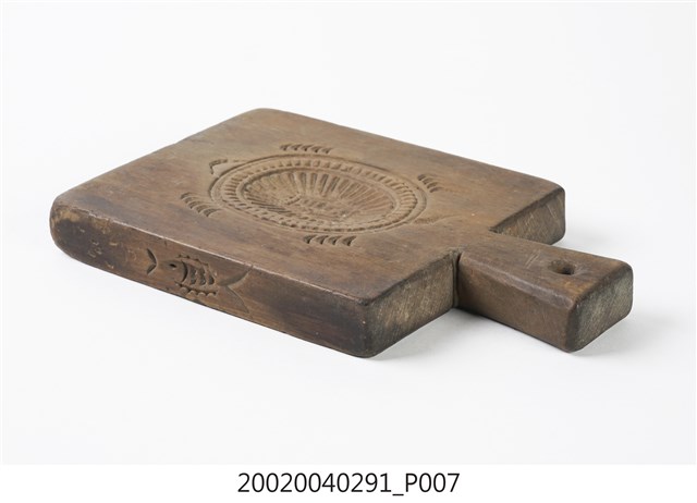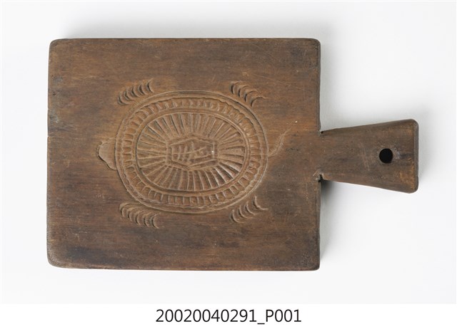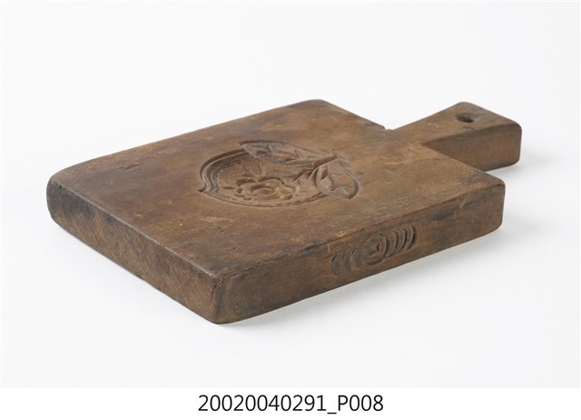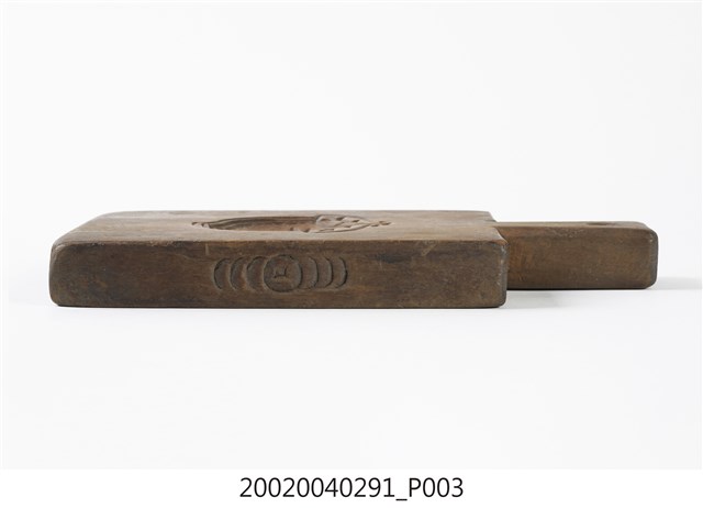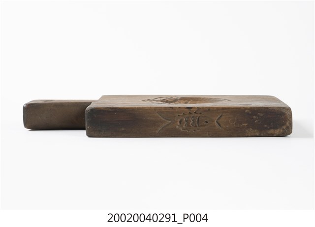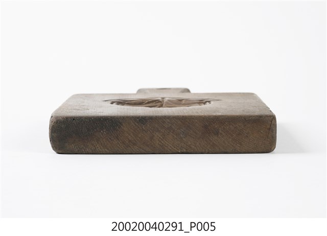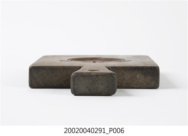 2002.004.0291 長方形四面雕龜桃連錢魚紋小型帶柄粿印