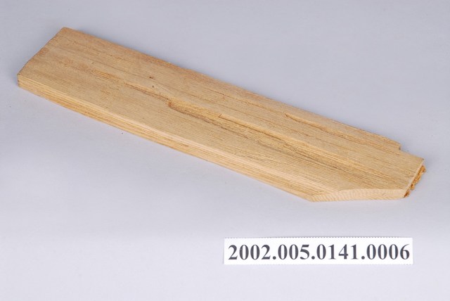 本物件為山豬陷套索組件,為一片木板。該物件大致為褐色,外觀如梯形扁木板,其中一角向內刻出長方形缺角。