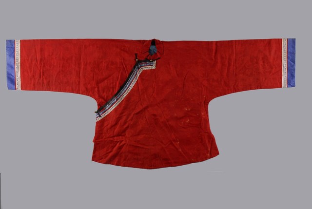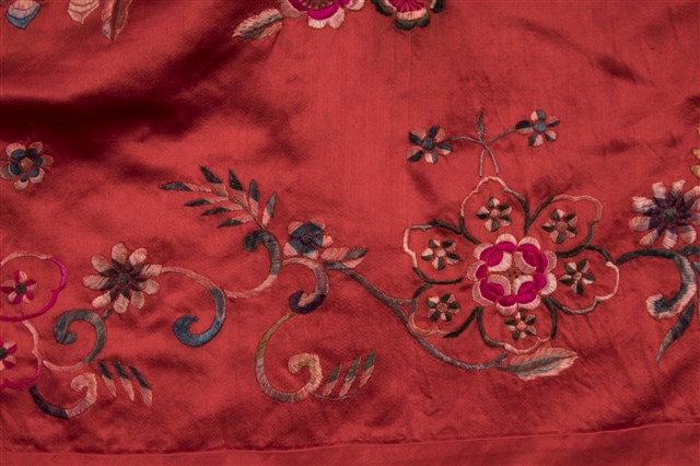2002.005.0483 紅絲緞彩繡花卉紋結婚禮服