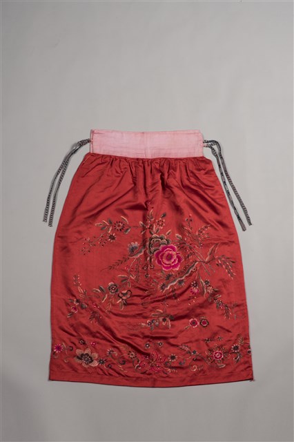 2002.005.0483.0002 紅緞地彩繡花卉紋桶裙