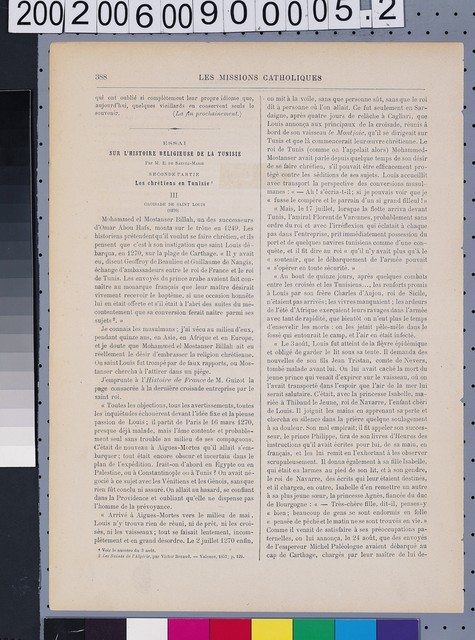 本物件為《天主教傳教團》(Les Missions Catholiques)一書,於1877年8月10日刊號的第387頁,是續收錄於次刊物的文章:《福爾摩沙島》(L’ile de Formose (Chine)II),中間的插畫是依據照片重新繪製的,描繪的是臺灣高山原住民的部落及住屋(Formose.-Huttes d'Igorrotes)。