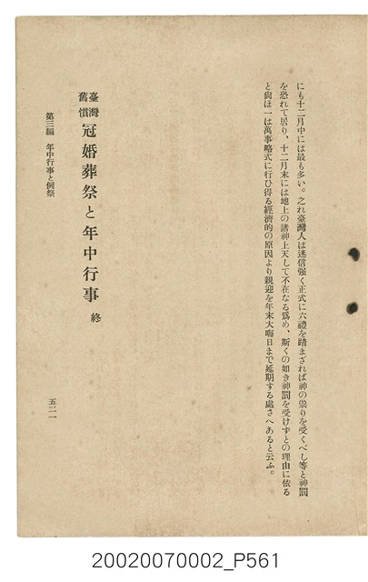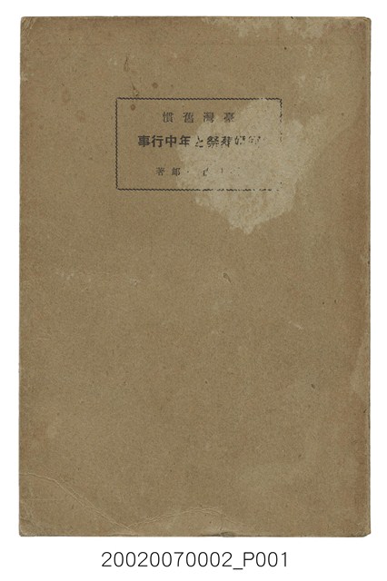 《臺灣學通訊》第25期 / 臺灣歲時記--館藏日治時期臺灣風俗與年中行事書展,臺灣學研究中心,https://www.ntl.edu.tw/ct.asp?xItem=2389&ctNode=457&mp=5 (瀏覽日期:2018/09/25)。