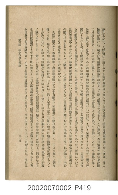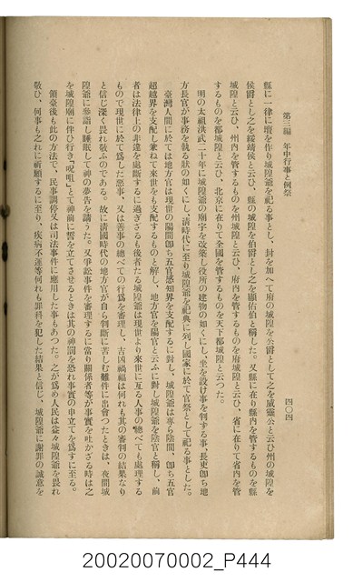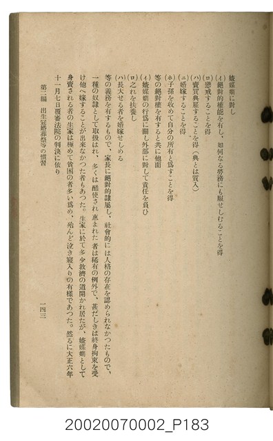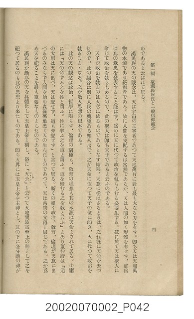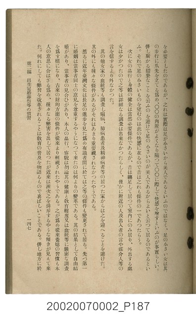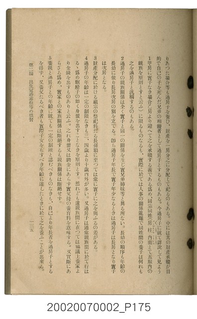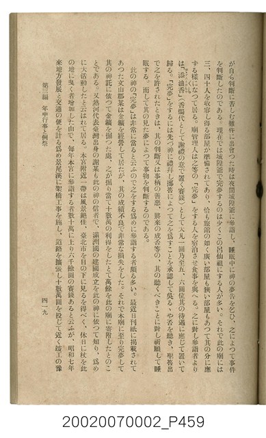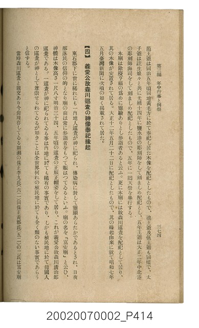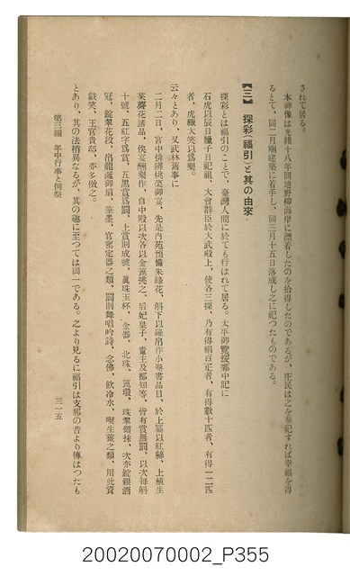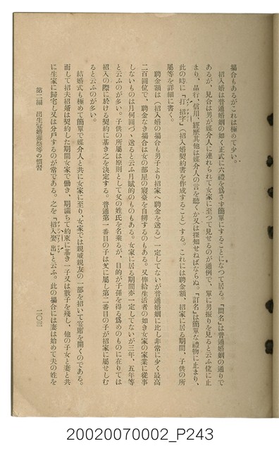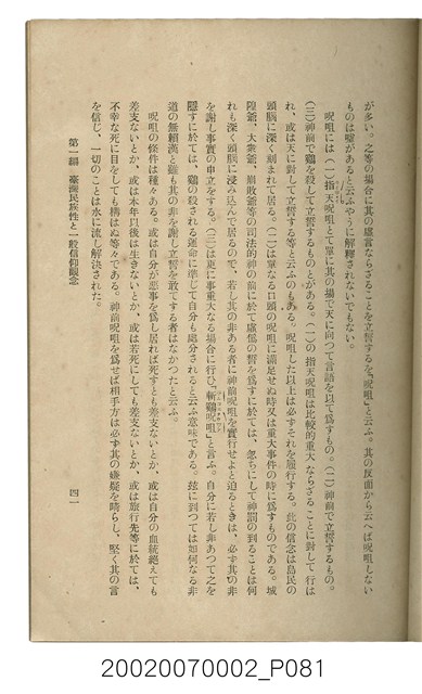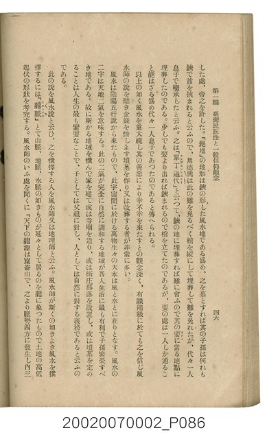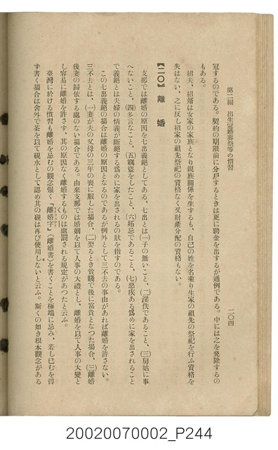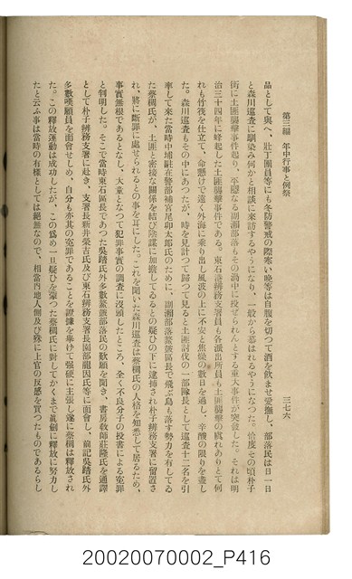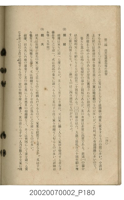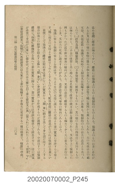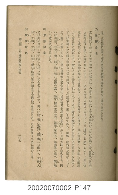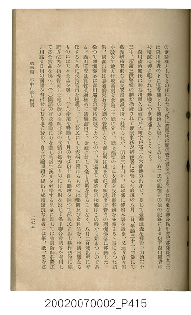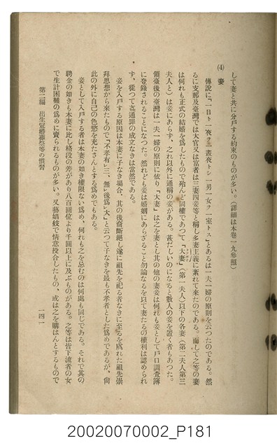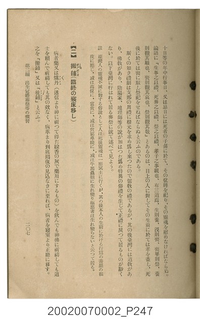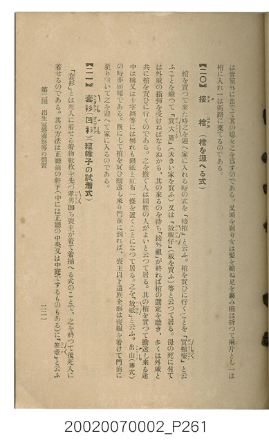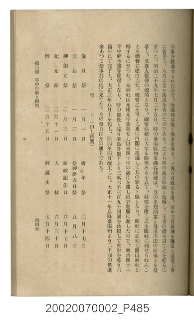 本物件為發行於昭和9年(1934)之《臺灣舊慣:冠婚葬祭與年度活動》,作者鈴木清一郎任職於總督府警務局,從事圖書檢閱的工作。本書內容分為三篇,分別為臺灣民族性與一般信仰觀念、出生冠婚葬祭等的習慣和年中行事與例祭。第一篇共十六章節:臺灣與中國、臺灣人的敬天思想與祖先崇拜、分類械鬥與西皮福祿之爭、臺灣人的階級觀念、移民與寺廟的建立、中國祭統治度、臺灣人的神概念、祠廟中祭神的地位、神軍的觀念、祠廟的分類、神罰與果報、臺灣人的立誓觀念、風水說、祭祀團體、神佛禮拜與祈禱、巫覡術士的法術等;第二篇共四章節:出生、冠禮、結婚和葬祭;第三篇共十二章節,依照月份介紹了整年的慶典活動。其序文為臺灣總督府警務局長石垣倉治所撰。
