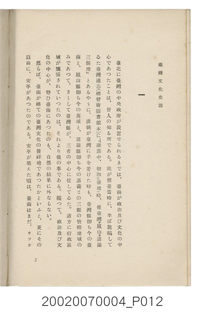 2002.007.0004 臺南州共榮會臺南支會編《臺灣文化史說》
