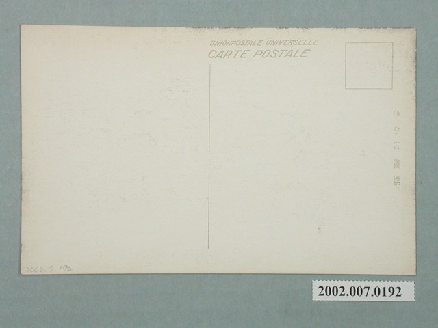 1.本物件為以臺南州廳為景之明信片。正面為臺南州廳正面之黑白照片。明信片可見該建築採用馬薩式屋頂。左側可看見衛塔。正門口前方有四棵枯樹,明信片最左方可看見樹木的枝葉。建築物四周為道路。明信片正面上方載有「(台南名所)台南州廳」之字樣。背面為明信片書寫面,右上方有郵票黏貼處。明信片右側有以漢字、平假名書寫之「郵便はがき」,正上方印有「UNIONPOSTALE UNIVERSELLE CARTE POSTALE」之字樣。2.臺南州廳係由日籍建築師森山松之助設計並於西元1916年落成使用,為磚造承重牆、鋼梁、及鋼筋混凝土二層樓建築,屋頂為銅瓦馬薩式屋頂,正門立面左右皆有一座圓柱形衛塔,位於日治時期大正公園(又名民生綠園、湯德章紀念公園)的南側。當時的臺南州包含現今臺南、嘉義、雲林等縣市,含有新豐、新化、曾文、北門、新營、嘉義、斗六、虎尾、北港、東石等十郡,臺南州廳以知事官房、內務部、警務部三個系統統籌臺南州的各種事務。戰後曾做為臺南市政府使用,現為國立臺灣文學館,為國定古蹟之一。
