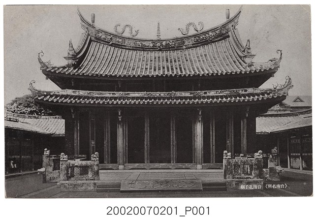 1.本物件為以臺南孔子廟為景之明信片。正面為臺南孔子廟之黑白照片。照片可見臺南孔子廟及其中院,院內有階梯、矮石牆。明信片右下方印有「(台南名所)台南孔子廟」之字樣。背面為明信片書寫面,右上方有郵票黏貼處,右側有以漢字、平假名書寫之「郵便はがき」,上方印有「UINION POSTALE UNIVERSELLE POST CARD」之字樣,而POST CARD中間有一個圓形圖案內有東字,中央有一條分隔線,且右邊的書寫欄內有數條橫的書寫輔助線。