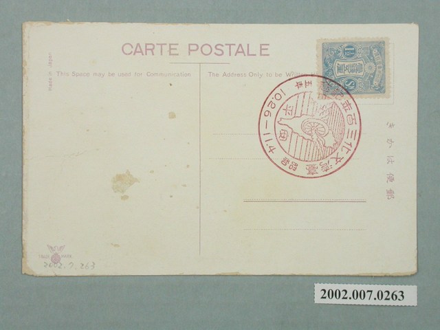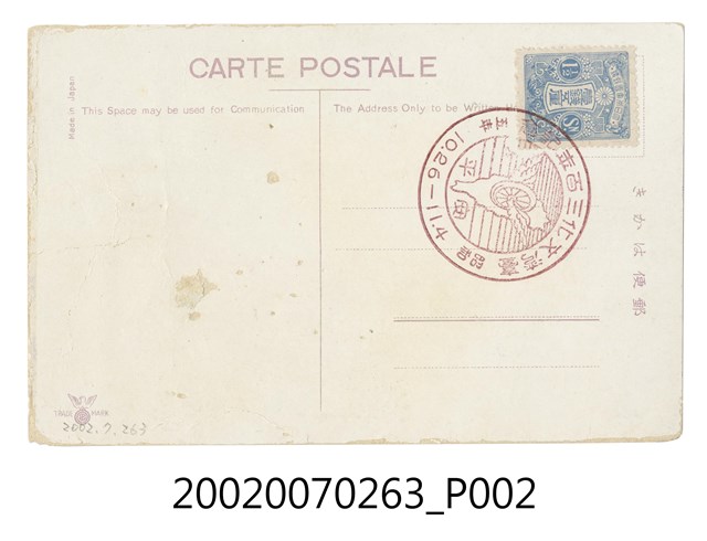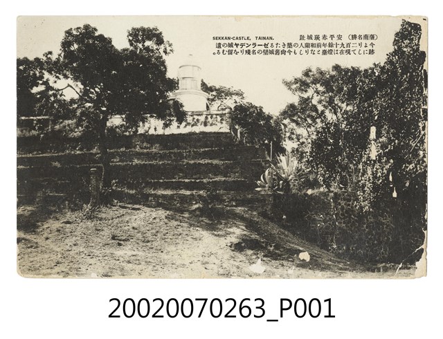 1.本物件為以安平燈塔為景之明信片。該明信片為安平燈塔之黑白照片。照片可見高處有安平燈塔,四周種有樹木。照片正下方載有「(臺南名勝)安平赤崁城趾SEKKAN-CASTLE, TAINAN.」、「今より二百九十餘年前和蘭人の築きたるゼーランデヤ城の遺跡にして現在は燈臺となりしも今尚舊城壁の名殘りを留むる。」之字樣。(日文大意:距今兩百九十多年前,由荷蘭人所建造的熱蘭遮城遺跡,現在有燈塔及舊城壁的殘骸。)背面為明信片書寫面,右上方有郵票黏貼處,貼有一張價值一錢五厘的藍色郵票,郵票附近蓋有紅色印章,印章內容為「台灣文化三百年紀念10.26-11.4」、兩個韓文字、中央圖案為臺灣,並載有安平二字。右側有以漢字、平假名書寫之「郵便はがき」,正上方印有「CARTE POSTALE」、中間有一條分隔線,線左邊標有「This space may be used for Communication」、「Made in Japen」,線的右邊標有「The Address Only to be Written Here」之字樣。左下方有老鷹註冊商標。2. 熱蘭遮城,即赤崁城趾、ゼーランヂヤ城趾,今之安平古堡,位於今臺南市安平區。係荷蘭人於西元1624年所建,1629年完工,築城材料主要由巴達維亞運來,1628年曾在此地發生過濱田彌兵衛事件,1661年鄭成功率兵由澎湖出發經安平鹿耳門登陸,侵襲普羅民遮城成功後,荷蘭人於熱蘭遮城死守9個月後與鄭成功和談並撤退回巴達維亞。此後,鄭成功將熱蘭遮城改稱安平鎮並居住於此。安平燈臺1872年設立於城內,原為一單純之燈火矩,1891年改建為一方型鐵塔,1909年再改建為磚造的白色圓形西式燈塔。3.昭和5年(1930)為紀念荷蘭東印度公司在臺建城300年,日本政府從10月26日起一連10天在臺南舉辦「臺灣文化三百年紀念會」,展出臺灣從原住民自由部落開始,歷經荷蘭東印度公司、鄭氏集團、清國到當代的文化史料與產業展。