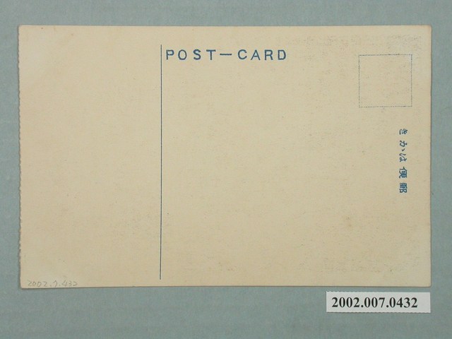 1.本物件以臺灣植物為主題,黑白樣式,其地點可能是位於某個特定物產展示會現場。正面為甘蔗一株株種植於盆栽內,右側有一女子坐於一桌子旁,桌上放有一白色猴子雕像及其他動物形象之雕塑。下方以漢字與日文書寫「臺灣の甘蔗」。背面右上角為郵票黏貼處,右側有以漢字、平假名書寫之「郵便はがき」,上方以英文字母書寫「POST CARD」。