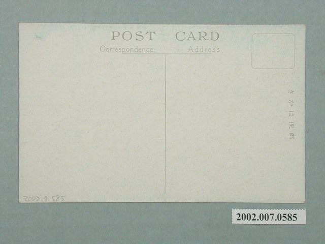 2.正面影像滿版印刷,上方印有黑色說明文字「(臺灣日月潭)日潭の風光、四圍山を繞らして湖水滿々天鏡の樣に澄み渡つた大自然の風光は、實に日月潭の魅力である。」(譯:四周被山所圍繞、滿滿的湖水如鏡面般澄靜,大自然的風光著實是日月潭魅力之所在。)。背面則印有灰色文字「郵便はかき、POST CARD、Correspondence、Address」。