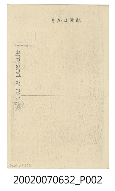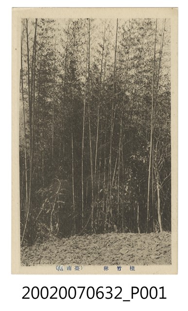 1.本物件為以臺南州桂竹林為主題之明信片,正面有桂竹林黑白照片,畫面中可見茂密生長之竹林,下方有1段文字「桂竹林(臺南州)」;背面為空白明信片直式書寫面,以黑色單色印刷,左上為郵票黏貼處,其下方有「SEIUNDO PRINTING CO.LTD.」字樣,上方有「郵便はかき」字樣,左側有1飛馬圖案及「carte postale」字樣。