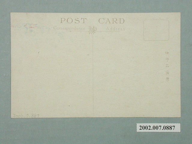 1.本物件為以水車為主題之明信片,其正面為臺灣竹製水車之彩色繪圖,畫面正中間即為水車,其為木頭及竹子打造而成,並由木頭支架延伸架設在水中,轉動時能帶動水流動,右側即為一窟池水,後方則為堤岸及綠草,明信片左上方有「(臺灣の印象)竹の水車」;背面為空白明信片橫式書寫面,以灰色單色印刷,右上方有郵票黏貼處,右側有「郵便はがき」,上方有「POST CARD」、「Correspondence」、「Address」。