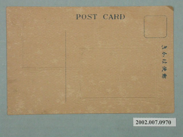 本物件為以手工教室成績品陳列場為主題之明信片,其正面有兩張黑白照片,右上影像有許多名學生於擺有課桌椅的教室內,其教室後方有3扇窗子;左下影像有各式作品擺設展示,牆面上掛有4幅掛軸,掛軸上有書法作品,右方展示桌上有各式手工作品展示,明信片左下方標有「手工教室」、「成績品陳列場」。背面為空白明信片橫式書寫面,以藍色單色印刷,右上方框為郵票黏貼處,右側有「郵便はがき」、上方有「POST CARD」,中間偏左有一分隔線。