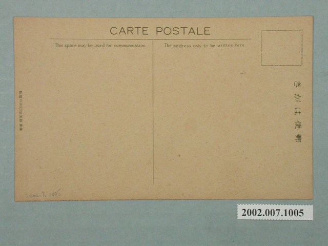 1.本物件為以始政四十周年記念臺灣博覽會,專賣館為主題之明信片,正面為專賣館黑白照片,畫面中可見其建物正面樣貌,建物上有「專賣館」字樣,右上有1段文字「始政四十周年紀念臺灣博覽會」,左上有1段文字「專賣館」,右上有1藍色圓形戳印,印有建物與山的圖案,由上至下有「始政四十周年記念臺灣博覽會」、「昭和十年十月十日至十一月二十八日」2段字樣;背面為空白明信片橫式書寫面,以黑色單色印刷,右上處為郵票黏貼處,右側有「郵便はがき」字樣,左側有「廣島精美堂印刷所謹製」字樣上方有「CARTE POSTALE」及2行字樣,由左至右為「This space may be used for communication」、「The address only to be written here」。