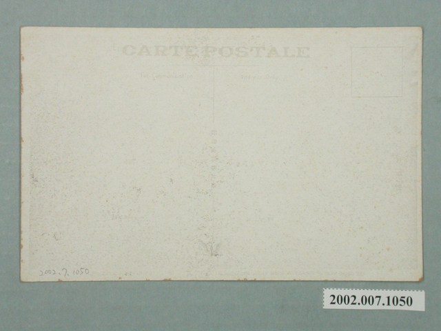 1.本物件以臺灣博覽會為主題,黑白樣式。正面為南方館之圖像,左側建築物為中式建築,設有圓拱門,屋頂有燕尾翹脊。中間建築物大致呈梯形對稱設計,右邊有一圓拱狀的建築物。下方以漢字書寫「始政四十周年記念臺灣博覽會臺北市大稻堤南方館+W33」、以英文字母書寫「THE GRAND SIGHT OF FORMOSA MEMORIAL EXHIBITION, TAIHOKU.」。明信片右上方有一藍色戳印「始政四十周年記念臺灣博覽會昭和十年自十月十日至十一月二十八日」,戳章左下角有溫泉圖示。背面右上角為郵票黏貼處,右側有以漢字、平假名書寫之「郵便はがき」,上方以英文字母書寫「CARTE POSTALE」、「For Communication」、「Address Only」,中間以漢字標示「臺北新高堂發行」。2.始政四十年紀念臺灣博覽會為西元1935年10月至11月以臺北為主舉辦的博覽會,分為4個會場,第一會場於臺北公會堂附近,第二會場於今二二八公園,第三會場於迪化街附近,第四會場於陽明山,而各地政府也各自舉辦小規模的展覽和活動。 南方館位於大稻埕分館,介紹主題為南洋、南中國、南日本地區的物產特色、開發情形、資源等,有1「南支南洋の地圖模型」,此館之設置與日本南進政策有密切相關。