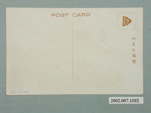 1. 本物件為以文化與躍進的臺灣南之守護島為主題之明信片,其正面為兩張影像,右方為船舶館、國防館的彩色繪圖,右側展覽館上方有船舵的裝飾,其入口上方以紅字標示「船舶館」,左方橘紅色、一樓牆面漆有迷彩的建築物為國防館,後面有一座粉紫色方柱建築,影像下方標註「船舶館」、「國防館」;右上方為剪裁為八角形的高雄州廳黑白照片,影像中磚造對稱建築物為高雄州廳,其前方為愛河,水面上有一艘船,下方標註「高雄州廳」,影像左方偏上位置蓋有一八角形藍色戳章,上方文字為「始政四十周年記念台湾博覽會」、「參觀記念」;明信片右上方標註「文化と躍進の台灣」、「南の守護島」。背面為空白明信片橫式書寫面,以橘色單色印刷,右上方框中有一形似粽子的圖樣,右側標有「郵便はがき」,上方有「POST CARD」,中間有一條分隔線。至十九世紀後期,總督府將現代化的展覽觀念引進臺灣。2. 西元1915年,博覽會第一次配合始政紀念日舉行。1935年,總督府擴大舉辦「始政四十週年紀念臺灣博覽會」。主要會場設置於臺北,全臺各地設置分館、分場。國防館與船舶館皆位於第二會場內,前者展示主題為日本國內海陸空三軍的軍事設備,並以宣傳現代化的軍事國防思想為目的;後者展示主題為航海交通發展,由大阪商船、近海郵船、大連汽船、遞信部海事課共同籌劃。3. 高雄州廳,完工於西元1931年,建築風格為羅馬式對稱風格,其屋頂為日式屋頂,原本位於現今高雄市鼓山區,因都市計畫遷移至現今愛河東岸,該建築物於1988年因空間不足拆除。