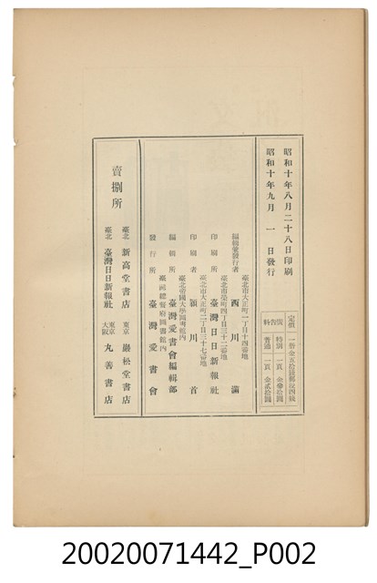 2.西川滿(1908-1999)是日治時期的作家與文藝工作者,昭和(1933)年與友人共組「臺灣愛書會」,出版雜誌《愛書》,擔任發行人兼編輯,介紹藏書票與版畫,可謂臺灣藏書票鑑賞之開端,一年出版3期,至昭和19年(1944)停刊。