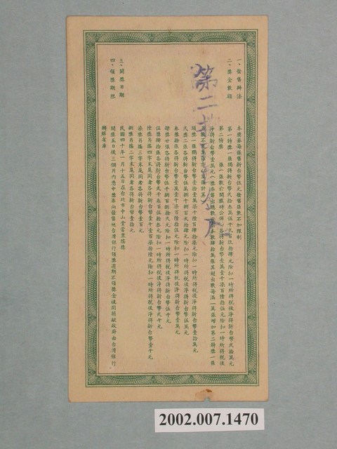 基本發行張數為四十萬張,自第17期起發行張數由30萬張增印至40萬張,直式鈔券式設計,粉紫色網底紋花形邊框,由上而下分別為,刊頭(第十七期),「愛國獎券」連接邊框飾以方框,編號S331336,面額新台幣伍圓以弧形花框飾網底紋樣,5和伍字樣飾花形框置於四角落,臺灣省政府委託臺灣銀行發行,中央印製廠台北廠。