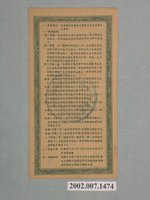 基本發行張數為五十萬張,自第21期起發行張數由40萬張增印至50萬張,直式鈔券式設計,綠色網底紋花形邊框,由上而下分別為,刊頭(第二十一期),「愛國獎券」,框飾莨苕葉,編號W168609,面額新台幣伍圓飾團花網底幾何紋樣,5和伍字樣飾花形框置於四角落,臺灣省政府委託臺灣銀行發行,中央印製廠台北廠。