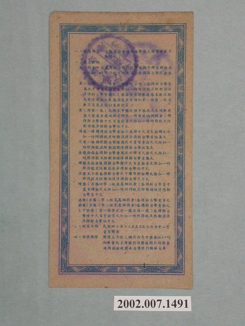 基本發行張數為五十萬張,直式鈔券式設計,藍色網底紋邊框,由上而下分別為,刊頭(第三十八期),「愛國獎券」四字白紋方框飾以莨苕葉,以總督府建築圖案為軸心,面額新台幣伍圓,由右至左白文雙框呈現,編號AP291938,編號下飾雙梅花及愛國致富浮水印,「愛國致富」四個字樣置於四角,臺灣省政府委託臺灣銀行發行,中央印製廠台北廠。