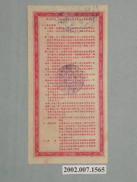 基本發行張數為八十萬張,直式鈔券式設計,中央印製廠,紅色網底框,刊頭(第壹佰壹拾貳期),「愛國獎券」四字白文置於框內,框飾莨苕葉及券帶紋等西洋紋飾,以蘇花公路的圖案為軸心,左右以「消滅共匪」、「永享太平」兩行字直寫於圖案兩旁,面額新台幣伍圓,白文置於框內,編號DR021427,編號下飾雙橢圓狀網底紋,「反共復國」四個字置於四角,臺灣省政府委託臺灣銀行發行,期數「112」以阿拉伯數字白文置於框下並置中,左右飾西洋花紋。