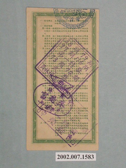 基本發行張數為八十萬張,直式鈔券式設計,中央印製廠,綠色網底框,刊頭「第壹佰叁拾期」,「愛國獎券」四字白文置於框內,框飾牛角狀卷葉紋及莨苕葉等西洋紋飾,以錢塘大橋的圖案為軸心,左右以「厲行戰時生活」、「養成節約習慣」兩行字直寫於圖案兩旁,面額新台幣伍圓,白文置於框內,上下飾連珠紋,左右飾券葉紋,編號EK728111,編號下飾雙梅花及愛國獎券浮水印,「光復大陸」四個字,以花形框置於四角,臺灣省政府委託臺灣銀行發行,期數「130」以阿拉伯數字白文置於框下並置中,左右飾西洋花紋。