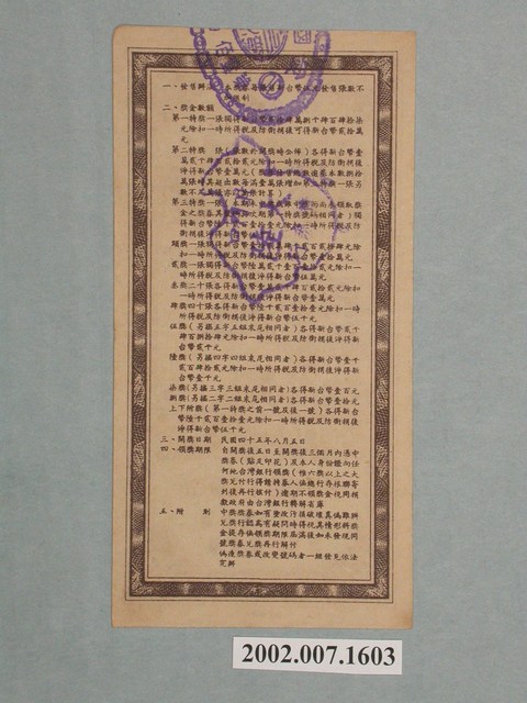 基本發行張數為八十萬張,直式鈔券式設計,中央印製廠,鐵灰色網底框,框內上下飾連珠紋,刊頭「第壹佰伍拾期」,「愛國獎券」四字白文置於框內,框飾勳章及莨苕葉飾,以錢塘大橋的圖案為軸心,「錢塘大橋」四字置於圖案右邊,面額新台幣伍圓,白文置於梯形框內,框上下飾連珠紋,編號FF621495,編號下飾雙梅花及愛國獎券浮水印,「平均地權」四個字,置於四角,臺灣省政府委託臺灣銀行發行,期數「150」以阿拉伯數字白文置於框下並置中,左右飾西洋花紋。