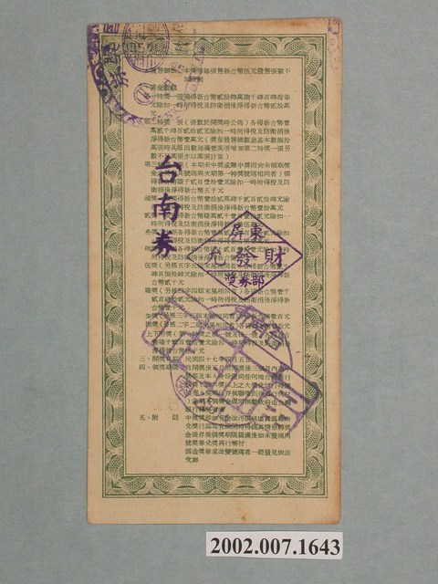 基本發行張數為八十萬張,直式鈔券式設計,中央印製廠,綠色網底框,刊頭「第壹佰玖拾期」,「愛國獎券」四字白文置於框內,框飾莨苕葉等西洋紋飾,以黃花崗圖案為軸心,「黃花崗」直式三字置於圖左方,面額新台幣伍圓,白紋置於方框內,框飾渦卷紋,編號GX759081,編號下飾雙梅花及愛國獎券浮水印,「國家至上」四個字,飾花框置於四角,臺灣省政府委託臺灣銀行發行,期數「190」以阿拉伯數字白文置於框下並置中,左右飾西洋紋飾。