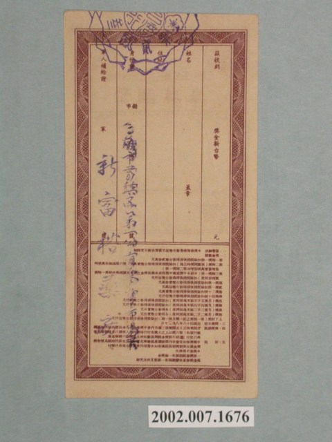 基本發行張數為八十萬張,直式鈔券式設計,中央印製廠,紫色網底框,刊頭內置「臺灣省政府委託臺灣銀行發行」、「愛國獎券」隸字,由右至左書寫,方框內繪製碧潭吊橋的圖案,「碧潭吊橋」四字橫式置於圖右上方,「新台幣」、「伍圓」白紋雙排字飾以西洋莨苕葉紋飾框,編號778370,編號下飾雙梅花愛國獎券浮水印,「第貳佰貳拾叁期」,「勵行節約」四個字,置於四角,期數「223」以阿拉伯數字白文置於框下並置中,左右飾西洋紋飾。