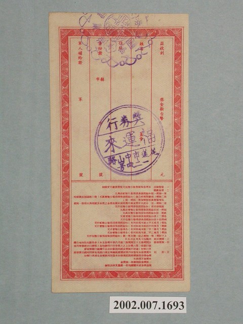 基本發行張數為八十萬張,直式鈔券式設計,中央印製廠,紅色網底框,刊頭內置「臺灣省政府委託臺灣銀行發行」、「愛國獎券」隸字,橢圓形開光內繪製台北市中山橋的圖案,「台北市」「中山橋」六字雙排橫式置於圖右上方,「新台幣」、「伍圓」白紋雙排字飾以網底紋花框,框上配置「發行十年紀念」六字,編號621752,編號下飾雙梅花愛國獎券浮水印,「第貳佰肆拾期」,「發揚正義」四個字,飾花框置於四角,期數「240」以阿拉伯數字白文置於框下並置中,左右飾西洋紋飾。