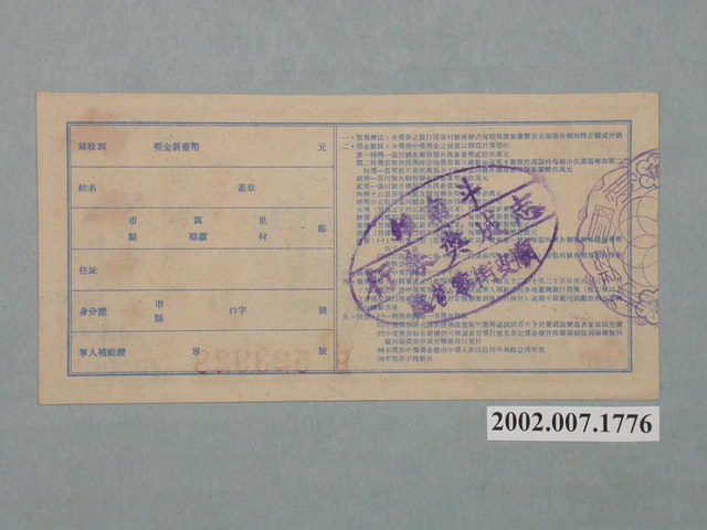 2002.007.1776 愛國獎券第323期