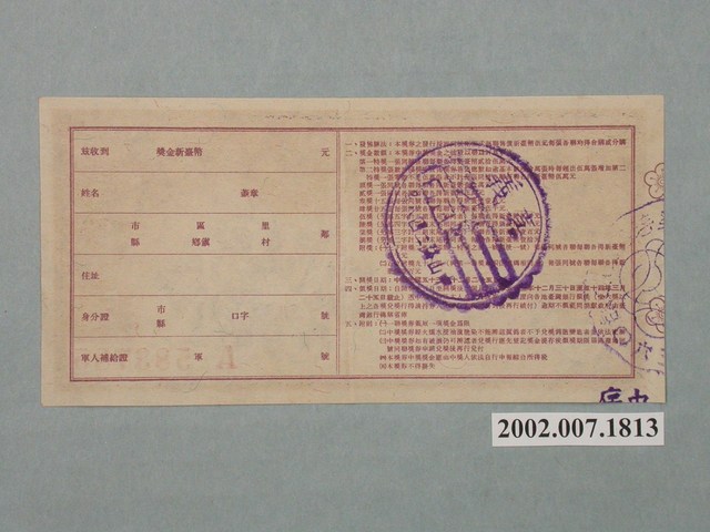 基本發行張數為六十萬張,橫式設計,由左至右,上列「愛國獎券」,「中華民國五十三年十二月廿五日開獎」,圓框「甲聯」飾雙葉紋,往右「新臺幣伍圓」,菱狀中心梅花卷紋,上「臺灣省政府委託臺灣銀行發行」」右下編號「A 583785」底飾愛國獎券浮水印,「第360期」。