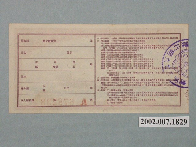 2002.007.1829 愛國獎券第376期