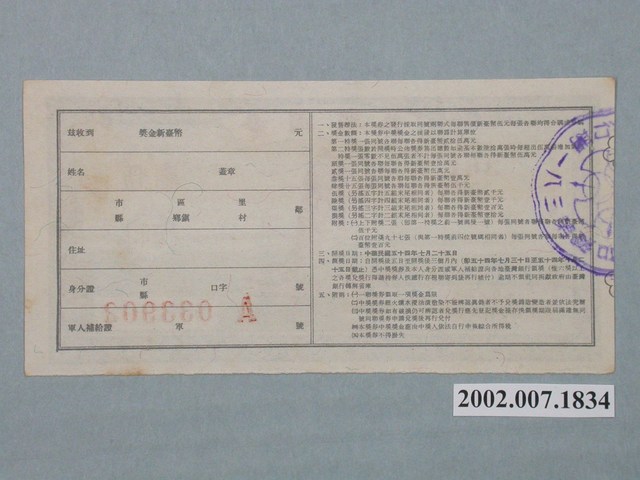 2002.007.1834 愛國獎券第381期