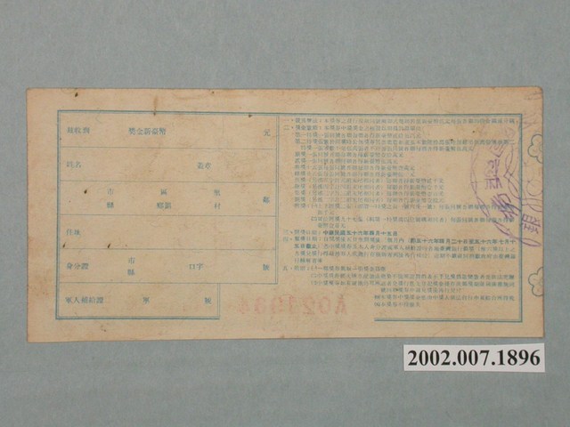 基本發行張數為六十萬張,橫式設計,由右至左,直條雙心形葉紋下角「甲聯」圓框,底飾古錢幣紋,上列「愛國獎券」,「中華民國五十六年四月十五日開獎」,「新臺幣伍圓」,「第443期」,「臺南運河」圖,下列中心編號「A021984」,左「臺灣省政府委託臺灣銀行發行」。