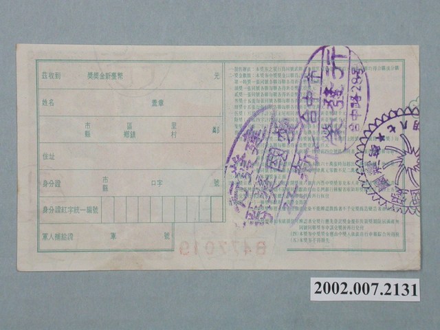 基本發行張數為六十萬張,橫式設計,煙火、國旗和氣球圖,底列編號「B477019」厲行法治浮水印,「愛國獎券」,「中華民國六十二年十月二十五日開獎」,「臺灣省政府委託臺灣銀行發行」,「慶祝臺灣光復節」,「第678期」,「新臺幣拾圓」,「乙聯」。